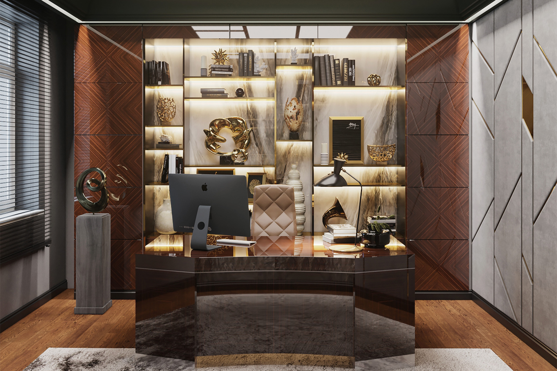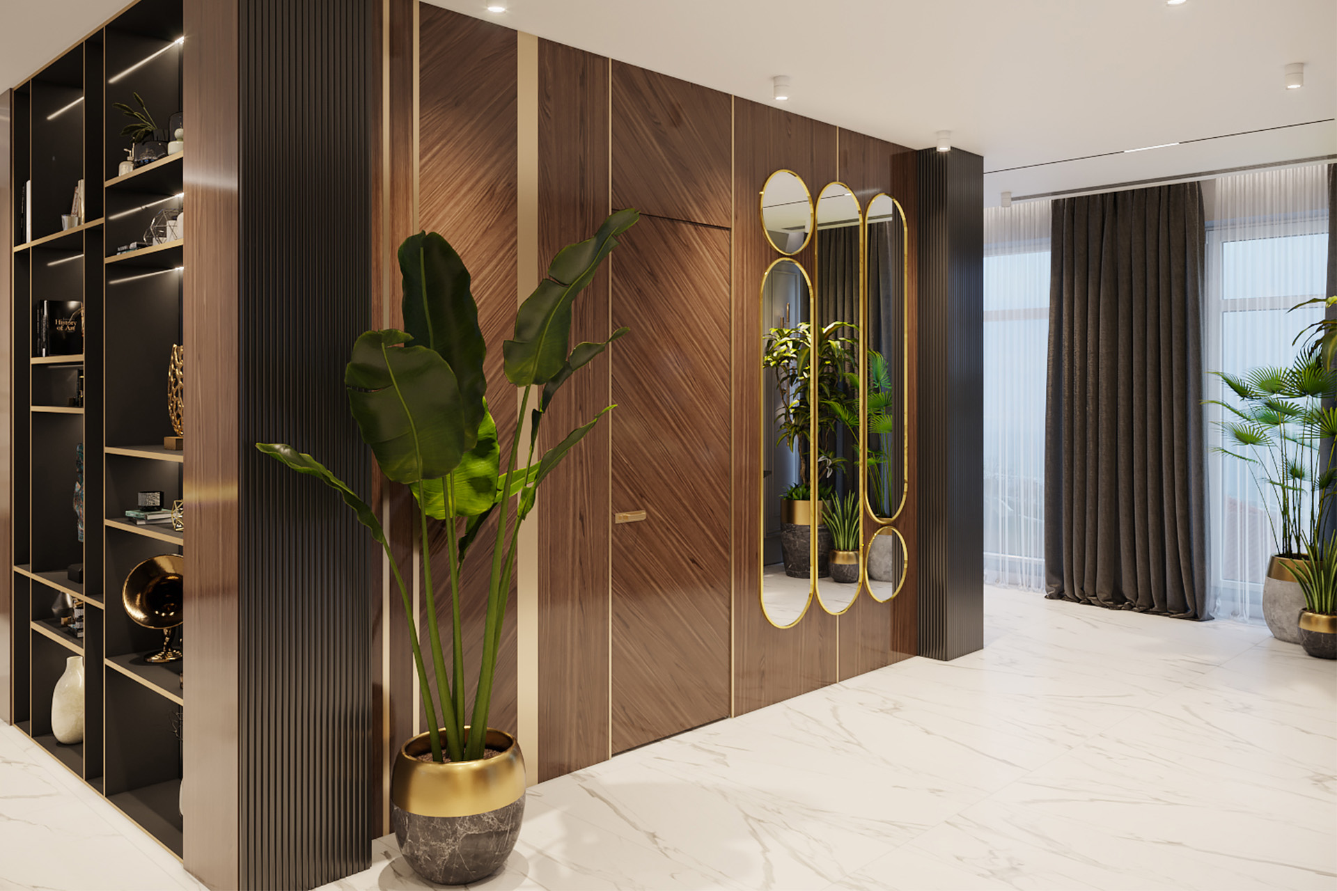 The aim of the project was to perfect an already existing space and to add a bit more of elite sense to the apartment. The main materials used are large-format ceramic and golden touches. There is also luxurious furniture, bright rich colours and high-quality lighting.