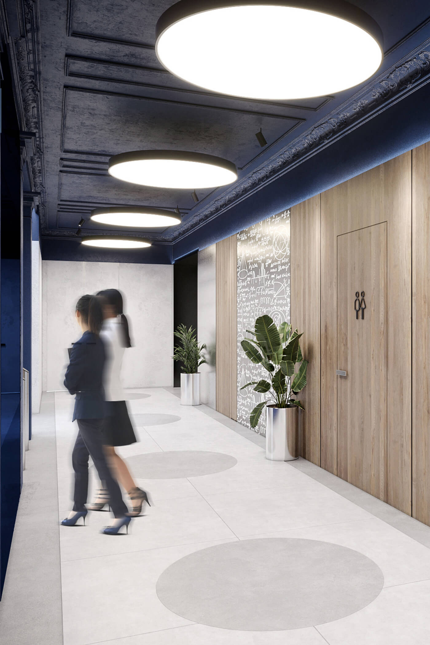 The interior for the headquarters of leading telecommunications company TENET takes on an ambitious challenge — preserving grand classical elements and integrating them into a high-tech environment. Coffered ceilings, stucco moldings, and columns with capitals, all preserved from the original space, are seamlessly intertwined with contemporary solutions, creating a unique balance between classical elegance and cutting-edge design.